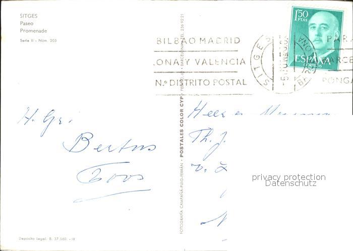 old postcard Sitges Paseo Promenade postalisch gelaufen Erhaltung siehe scans