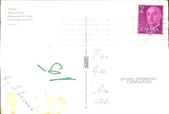 old postcard Sitges Promenade postalisch gelaufen Erhaltung siehe scans