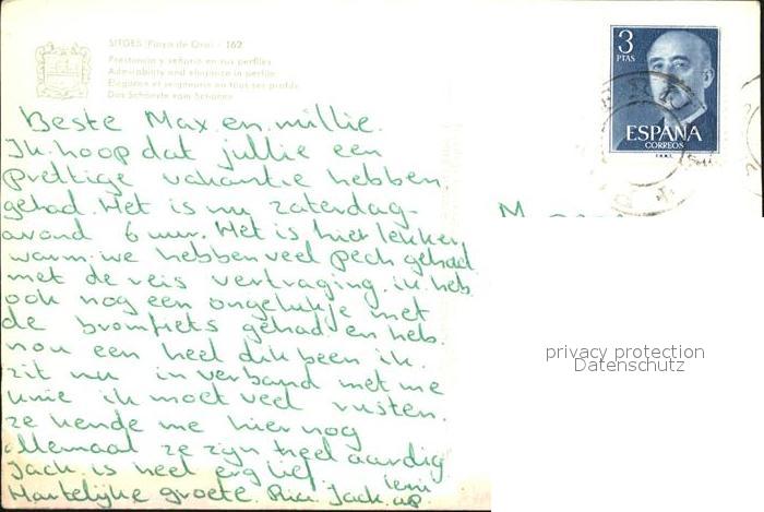 old postcard Sitges Strandpromenade Kirche postalisch gelaufen Erhaltung siehe scans