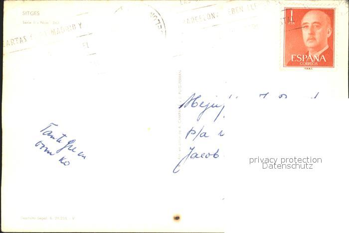 old postcard Sitges Vista parcial Iglesia Serie II Num 263 postalisch gelaufen Erhaltung siehe scans