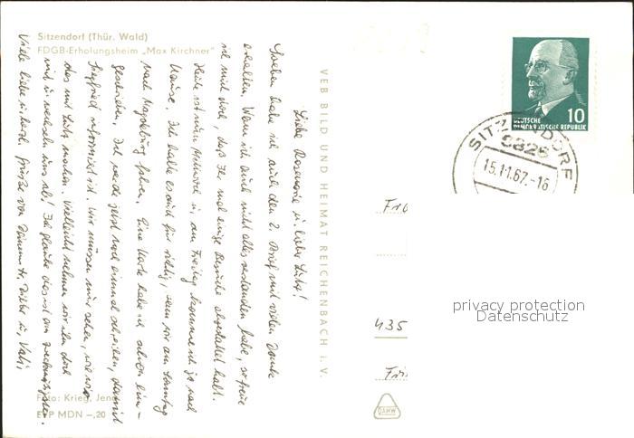 72010923 alte Postkarte Sitzendorf Thueringen FDGB Erholungsheim Max Kirchner postalisch gelaufen Erhaltung siehe scans KatCode: 11110016073084