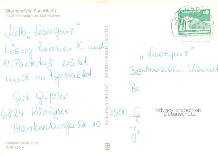 73618144 alte Postkarte Sitzendorf Thueringen FDGB Erholungsheim Max Kirchner postalisch gelaufen Erhaltung siehe scans [WerneD78] KatCode: 11110016073084