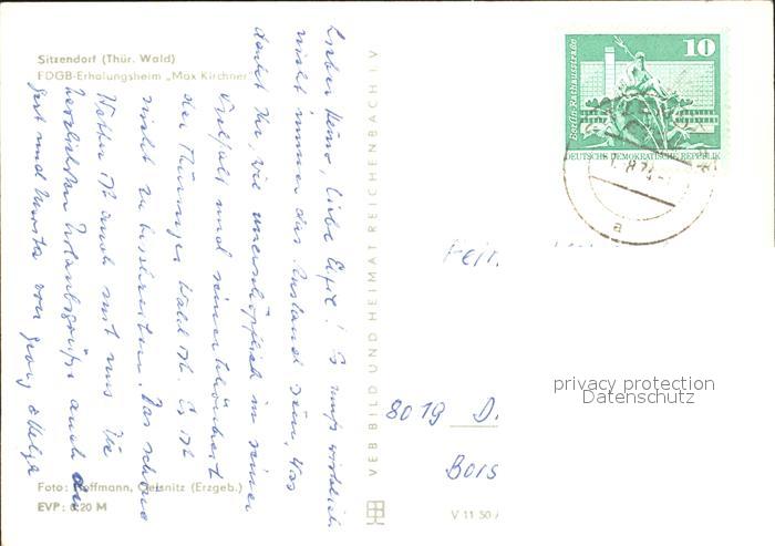 72072718 alte Postkarte Sitzendorf Thueringen FDGB Erholungsheim Max Kirchner postalisch gelaufen Erhaltung siehe scans KatCode: 11110016073084