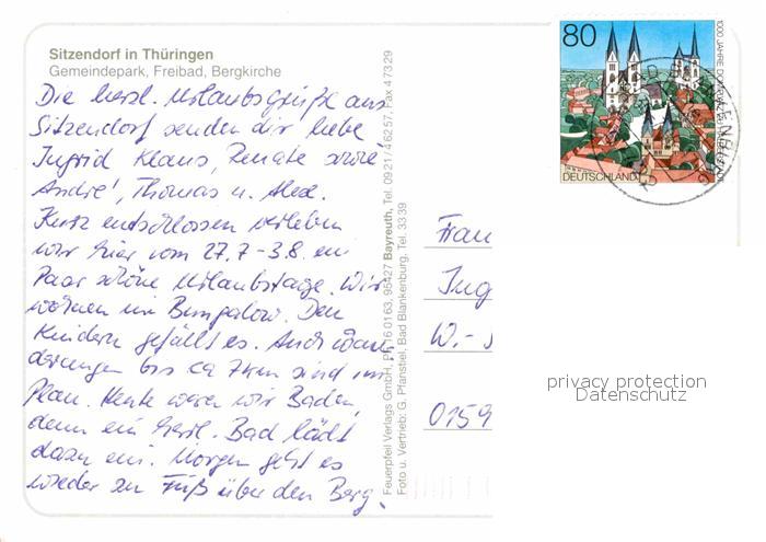 72621374 alte Postkarte Sitzendorf Thueringen Gemeindepark Freibad Bergkirche postalisch gelaufen Erhaltung siehe scans [LiesaD40] KatCode: 11110016073084