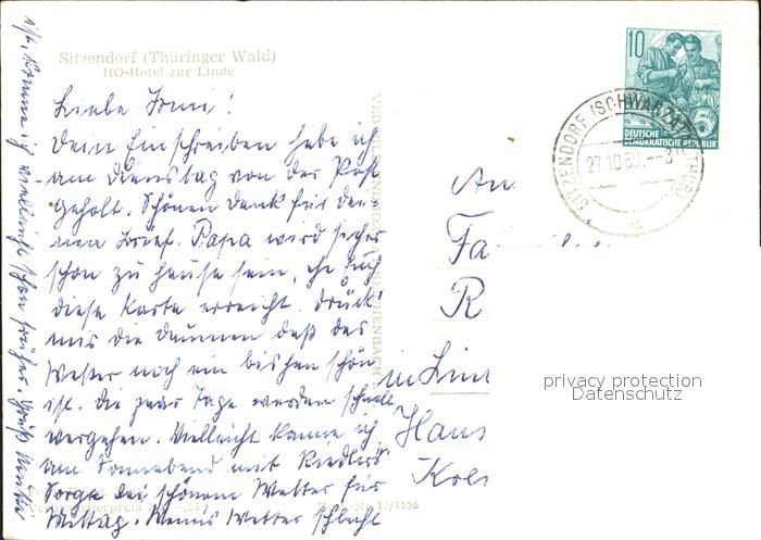 72064276 alte Postkarte Sitzendorf Thueringen HO Hotel zur Linde Restaurant postalisch gelaufen KatCode: 11110016073084