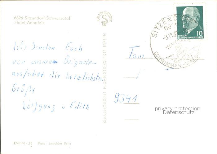72047820 alte Postkarte Sitzendorf Thueringen Hotel Annafels postalisch gelaufen Erhaltung siehe scans KatCode: 11110016073084