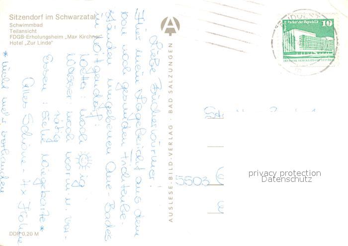 73071164 alte Postkarte Sitzendorf Thueringen Schwimmbad Erholungsheim Max Kirchner Hotel Zur Linde postalisch gelaufen Erhaltung siehe scans [NatalD47] KatCode: 11110016073084