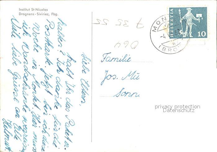 11646929 alte Postkarte Siviriez Institut St Nicolas postalisch gelaufen Erhaltung siehe scans KatCode: 11470070260064