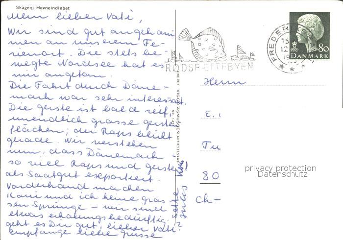 old postcard Skagen Hafeneinfahrt mit Leuchtturm postalisch gelaufen Erhaltung siehe scans