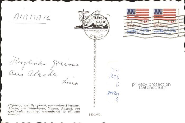 72381843 old postcard Skagway Whitehorse Highway postalisch gelaufen Erhaltung siehe scans KatCode: 14140020000000