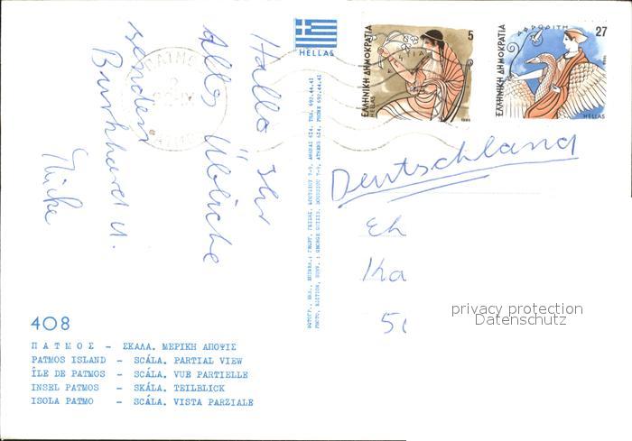 old postcard Skala Patmos Hafen Fischerboot postalisch gelaufen Erhaltung siehe scans