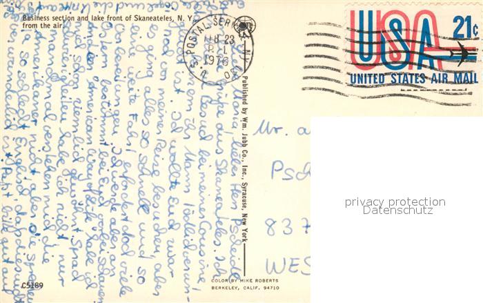 73068510 old postcard Skaneateles Business section Fliegeraufnahme postalisch gelaufen Erhaltung siehe scans [NatalD47] KatCode: 14140340000000