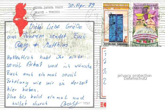 74096923 old postcard Skanes Monastir Tunesie Hotel Sahara Beach Fliegeraufnahme postalisch gelaufen Erhaltung siehe scans [WerneD78] KatCode: 18520