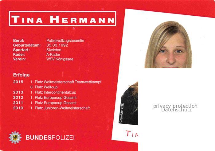74150581 Skeleton Schlitten Bobsleigh Traineaux– Tina Hermann Autogramm postalisch nicht gelaufen Keine Postkarte (siehe scan) Erhaltung siehe scans [IrynaD87] KatCode: 22520000002300