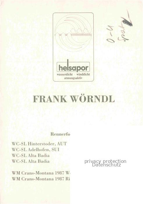 74132853 Ski -Abfahrt Skiing– Frank Woerndl Weltmeister helsapor postalisch nicht gelaufen Erhaltung siehe scans [SanaeD93] KatCode: 22520000002300
