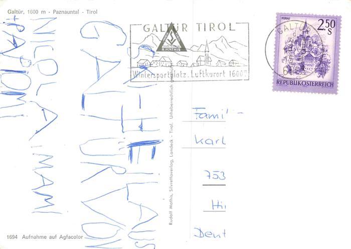 74031252 alte Postkarte Ski-Abfahrt Skiing– Galtuer Paznauntal Tirol postalisch gelaufen Erhaltung siehe scans [SanaeD93] KatCode: 22520000002300