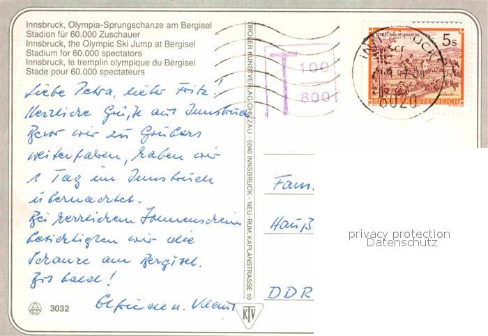 alte Postkarte Ski-Flugschanze Bergisel Stadion Innsbruck postalisch gelaufen Erhaltung siehe scans [PaolaD17]