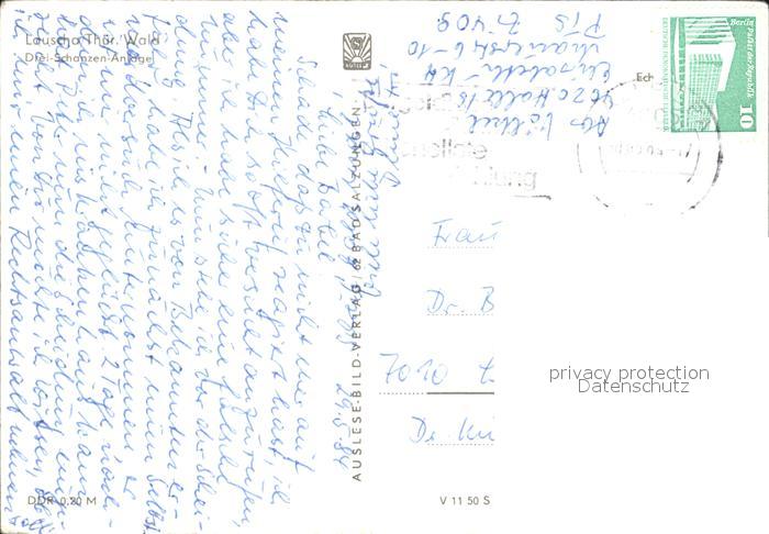 alte Postkarte Ski-Flugschanze Drei-Schanzen-Anlage Lauscha Thueringen postalisch gelaufen Erhaltung siehe scans