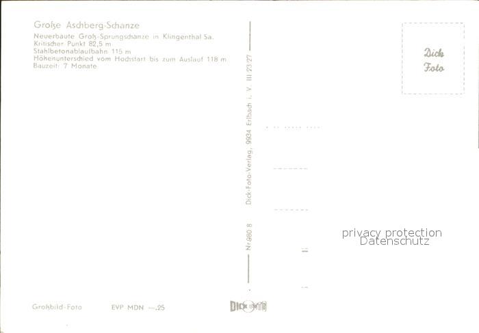 Ski-Flugschanze Grosse Aschberg Schanze Klingenthal postalisch nicht gelaufen Erhaltung siehe scans