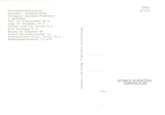 74122923 Ski-Flugschanze Heini Klopfer Obersdorf Birgsautal Allgaeu postalisch nicht gelaufen Erhaltung siehe scans [SanaeD93] KatCode: 22520000002300