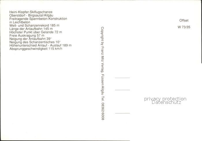 Ski-Flugschanze Heini-Klopfer Oberstdorf Birgsautal postalisch nicht gelaufen Erhaltung siehe scans