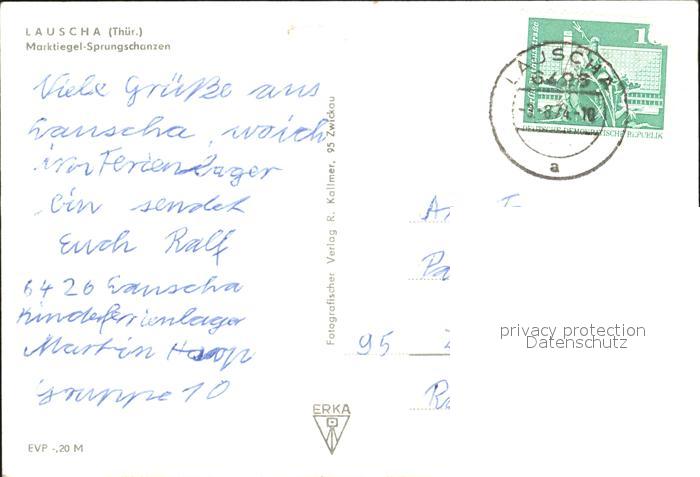 alte Postkarte Ski-Flugschanze Marktiegel Lauscha Thueringen postalisch gelaufen Erhaltung siehe scans