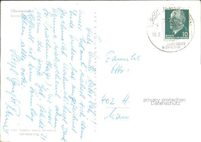 alte Postkarte Ski-Flugschanze Oberwiesenthal postalisch gelaufen Erhaltung siehe scans