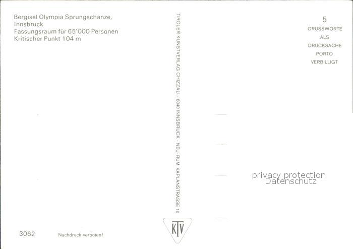 Ski-Flugschanze Olympia-Sprungschanze Bergisel Innsbruck postalisch nicht gelaufen Erhaltung siehe scans