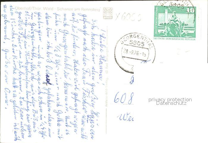 alte Postkarte Ski-Flugschanze Rennsteig Oberhof Thueringen postalisch gelaufen Erhaltung siehe scans