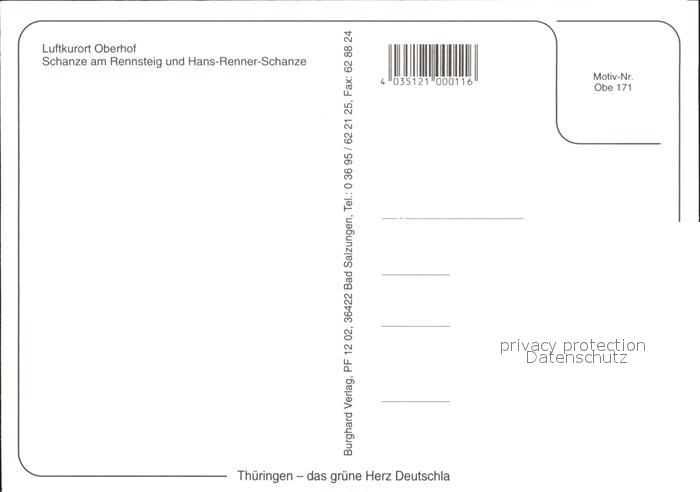Ski-Flugschanze Schanze am Rennsteig Hans-Renner-Schanze Oberhof postalisch nicht gelaufen Erhaltung siehe scans