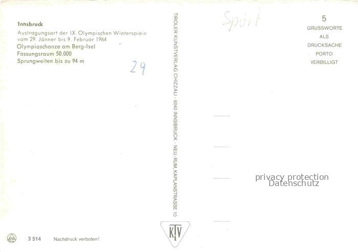 74150593 Ski-Flugschanze Skiflugschanze– Innsbruck Olympische Winterspiele postalisch nicht gelaufen Erhaltung siehe scans [IrynaD87] KatCode: 22520000002300