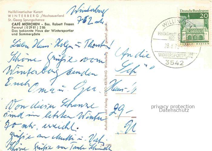 74155077 alte Postkarte Ski-Flugschanze Skiflugschanze– Winterberg Hochsauaerland Café Moerchen postalisch gelaufen Erhaltung siehe scans [SanaeD93] KatCode: 22520000002300