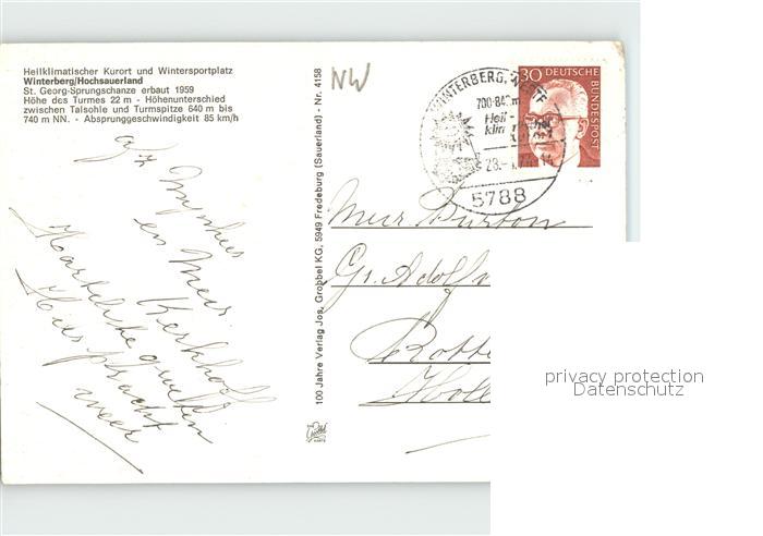alte Postkarte Ski-Flugschanze St. Georg-Sprungschanze Winterberg Hochsauerland postalisch gelaufen Erhaltung siehe scans
