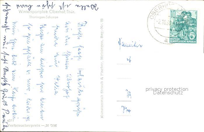 alte Postkarte Ski-Flugschanze Thueringen-Schanze Oberhof postalisch gelaufen