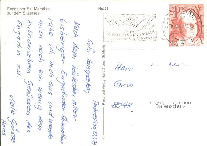 alte Postkarte Ski-Langlauf Engadin Skimarathon postalisch gelaufen Erhaltung siehe scans