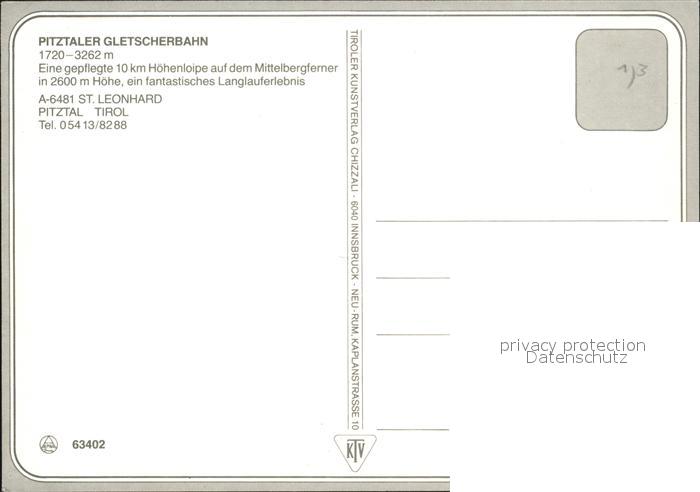 Ski-Langlauf Hoehenloipe Pitztaler Gletscher Mittelbergferner postalisch nicht gelaufen Erhaltung siehe scans