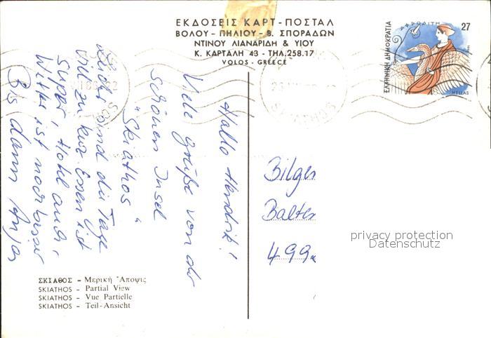 old postcard Skiathos Hafen postalisch gelaufen Erhaltung siehe scans