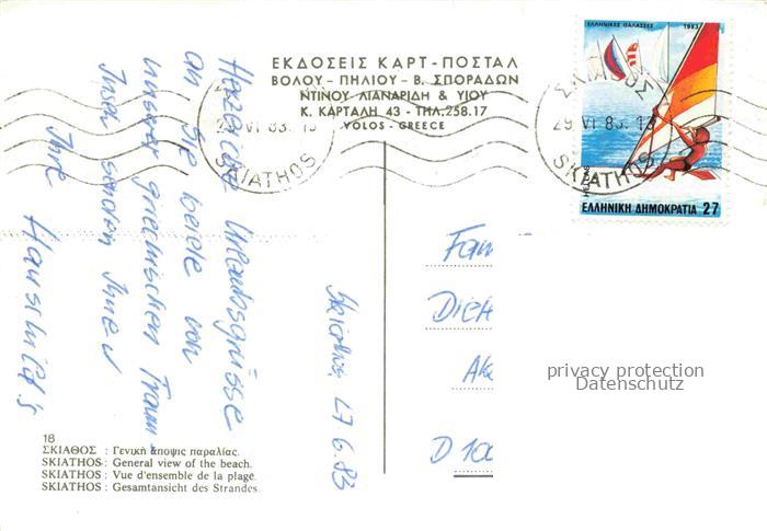 74096916 old postcard Skiathos Insel Sporaden Greece Fliegeraufnahme postalisch gelaufen Erhaltung siehe scans [WerneD78] KatCode: 11190