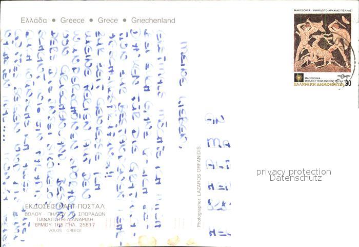 old postcard Skiathos Strand Bucht Hotelanlage Hafen postalisch gelaufen Erhaltung siehe scans