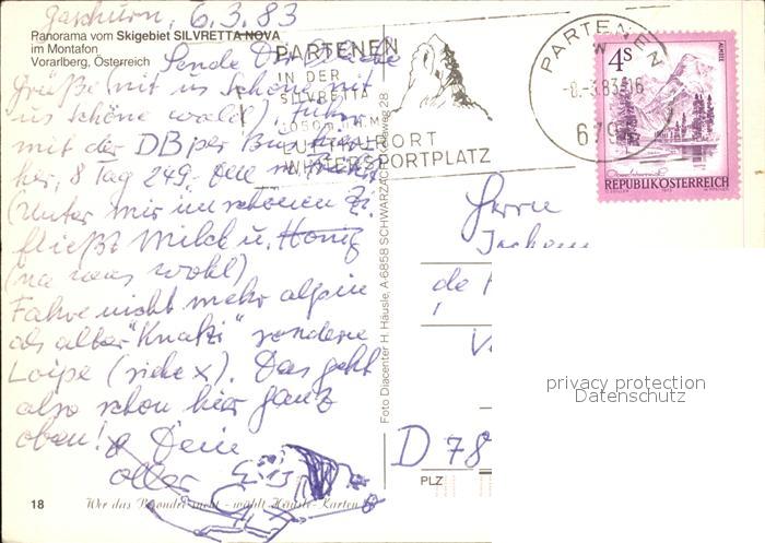 alte Postkarte Skifahren Skigebiet Silvretta Nova Montafon Vorarlberg Skicircus postalisch gelaufen Erhaltung siehe scans