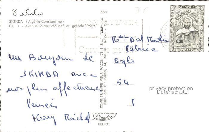 old postcard Skikda Avenue Zirout-Youcef grande Poste postalisch gelaufen Erhaltung siehe scans