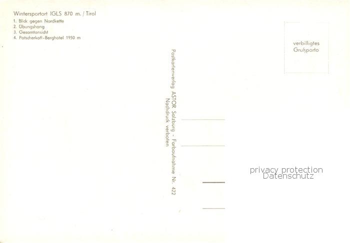 73898983 Skilift Schlepplift Remontees-Mecaniques IGLS Tirol postalisch nicht gelaufen Erhaltung siehe scans [IrynaD87] KatCode: 22040000000400