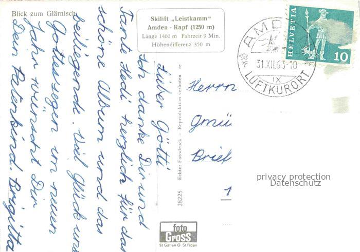 74050678 alte Postkarte Skilift Schlepplift Remontees-Mecaniques Leistkamm Amden Kapf Glaernisch postalisch gelaufen Erhaltung siehe scans [SanaeD93] KatCode: 22040000000400