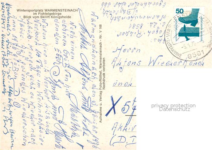 73899085 alte Postkarte Skilift Schlepplift Remontees-Mecaniques Warmensteinach Fichtelgebirge postalisch gelaufen Erhaltung siehe scans [IrynaD87] KatCode: 22040000000400