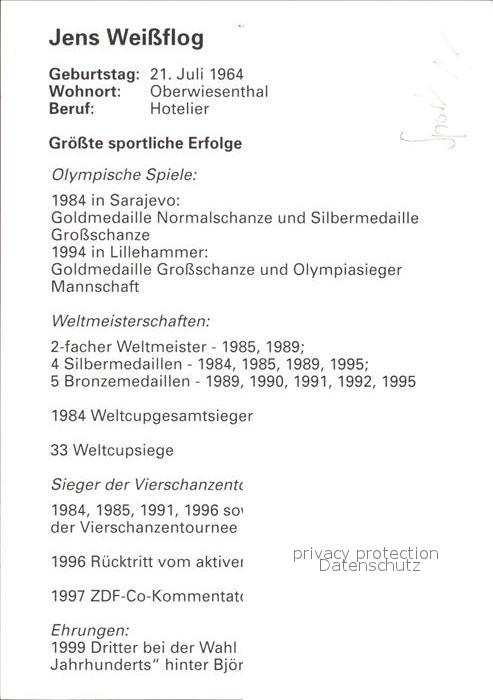 Skispringen Jens Weissflog Autogramm postalisch nicht gelaufen Keine Postkarte (siehe scan) Erhaltung siehe scans