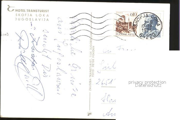 old postcard Skofja Loka Sora Hotel Transturist postalisch gelaufen Erhaltung siehe scans