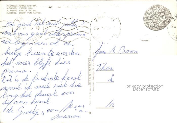 old postcard Skopelos Alonissos Bucht von Patitiri postalisch gelaufen Erhaltung siehe scans