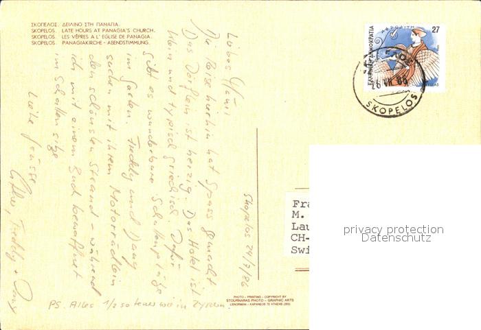 old postcard Skopelos Ortspartie postalisch gelaufen Erhaltung siehe scans