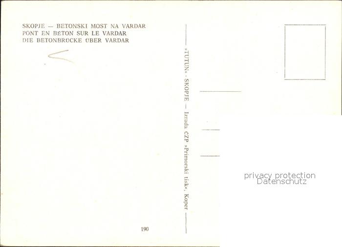 Skopje Skoplje Bruecke ueber Vardar postalisch nicht gelaufen Erhaltung siehe scans [LiesaD40]