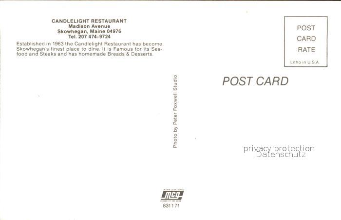 71845008 Skowhegan Candlelight Restaurant postalisch nicht gelaufen KatCode: 14140210000000